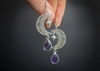 Kolczyki luna z ametystem i srebrem 925 – harmonia, intuicja i duchowy rozwój. Czakra trzeciego oka, korony, kobieca energia.