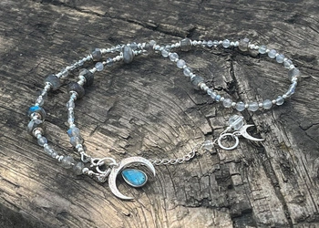 Naszyjnik luna z labradorytu i srebra 925 – ochrona, intuicja i duchowy rozwój. Czakra trzeciego oka. Księżyc.