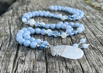 Mala z Akwamaryny i Kyanitu do Medytacji