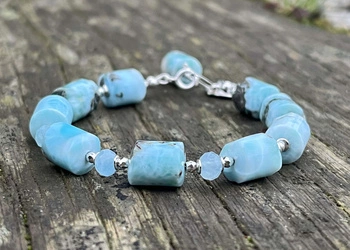 - Larimar – emocjonalna lekkość. Larimar to kamień, który wprowadza harmonię podczas zmian, a te są dla Piątki codziennością. Pomaga adaptować się bez stresu, łagodzi napięcia i zachęca do świadomego przechodzenia przez nowe etapy życia. Idealny dla tych, którzy czasem czują się przytłoczeni własną potrzebą wolności.
