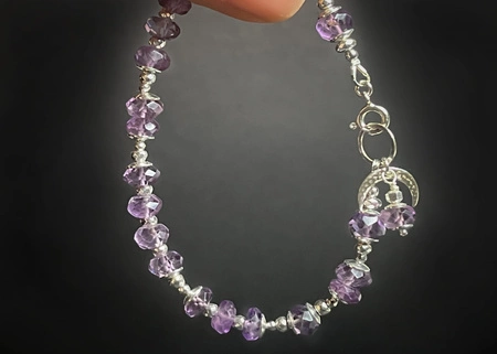 • Bransoletka z ametystu i srebra 925 – ochrona, równowaga i duchowy rozwój. Czakra trzeciego oka i korony, harmonia emocjonalna.