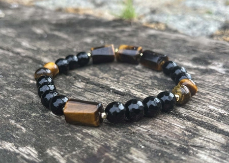 Wymiary: onyks 8 mm, tygrysie oko 12x8 mm, długość bransoletki 20 cm