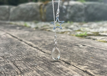 Materiał: kryształ górski, srebro próby 925, detal ze stali nierdzewnej