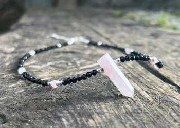 Naszyjnik turmalin czarny i kwarc różowy – ochrona, uziemienie i miłość. Czakra serca, podstawy i harmonia relacji.