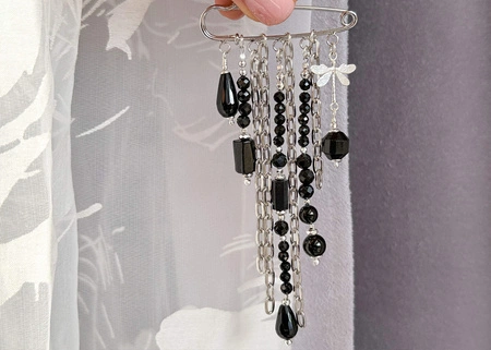 - Broszka z czarnym turmalinem, stali nierdzewnej i srebra próby 925 – ręcznie robiona biżuteria ochronna. Turmalin neutralizuje negatywne energie, stal zapewnia trwałość, srebro dodaje blasku. Idealna jako prezent