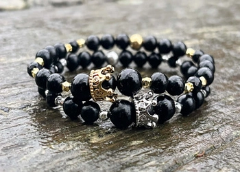 Czarny Turmalin Bransoletka z Koroną