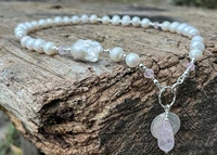 Naszyjnik z Perłą Barokową i Kwarcem Różowym